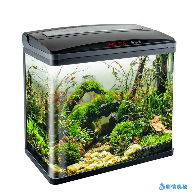 鱼之宝 鱼缸水族箱 数显 生态智能高清玻璃 触摸开关 LED灯带过滤创意观赏鱼缸金鱼缸 E5 黑色 50*29*47cm