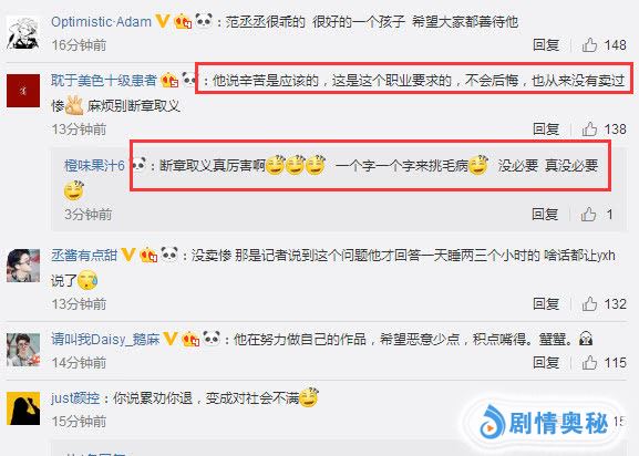 范丞丞粉丝纷纷力挺:他说辛苦是应该的,这是这个职业要求的,不会后悔,也从来没有卖过惨,麻烦别断章取义!范丞丞很乖的,很好的一个孩子,希望大家都善待他。