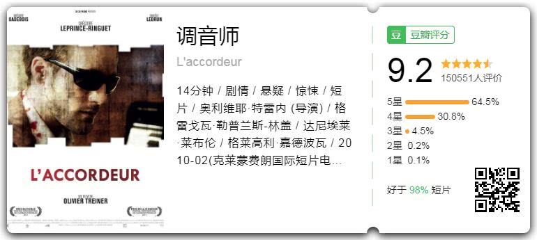 这部《调音师》改编自2010年的同名法国高分悬疑短片。