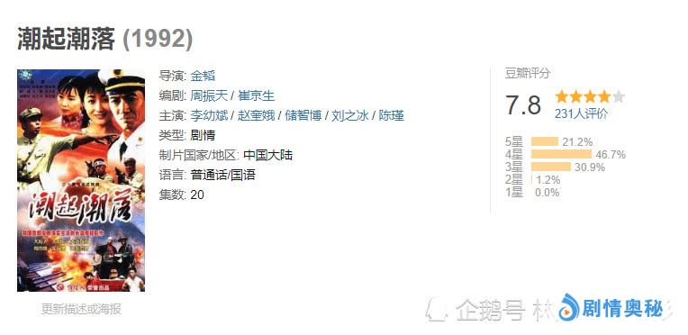 比较老的剧,尽管服装道具什么的比较简陋,但演员的演技却都在线,剧中很多老戏骨,他们将角色的含蓄自然都表现的很好。