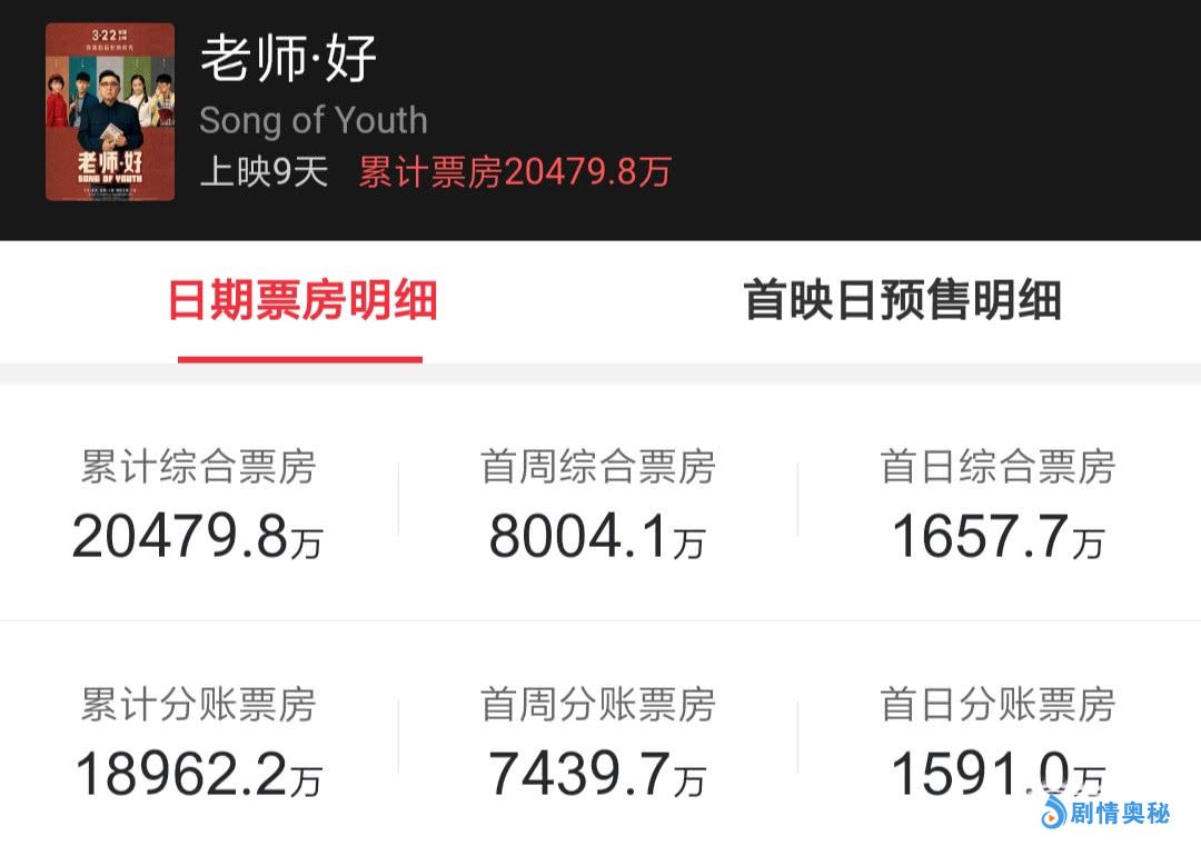经过9天上映,《老师·好》累计票房已突破2亿,成为继《比悲伤更悲伤的故事》之后,又一匹不可忽视的票房“黑马”,于谦再度证明了自己!
