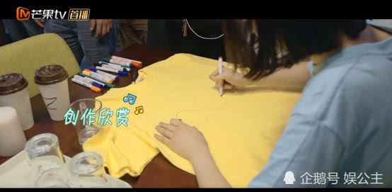 郑爽在拍戏休息期间就在不停的创造当中,她身上穿的各种T恤都画上了自己的作品!