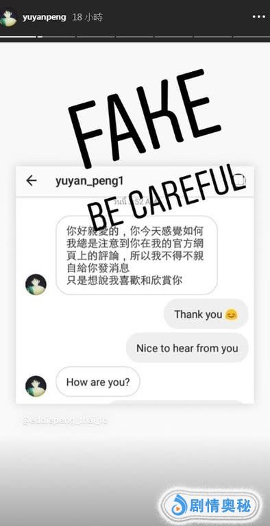 不过这个人是假的!彭于晏在得知此事后,也是无奈地发文回应,称有人盗用自己的照片,创建了一个假的账号,还用私信撩粉丝。彭于晏也提醒大家要认准账号,不要上当受骗了。