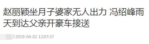 4月1号终于,据媒体报道,赵丽颖坐月子婆家无人出力,冯绍峰雨天到达父亲开豪车接送。赵丽颖在北京,冯绍峰一个人空降在了上海机场,老父亲出面亲自开玛莎拉蒂去迎接儿子回家。