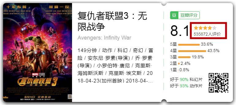 同时,在豆瓣出现55万人打分的盛景,比《复联3》还多。