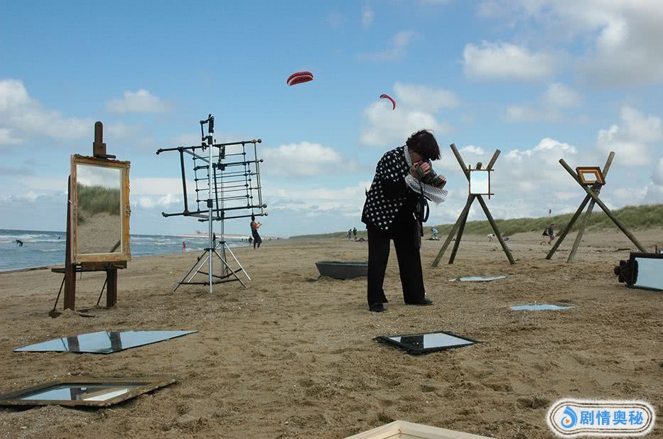 在瓦尔达最爱的海滩上,她摆满了大大小小的镜子,这些互相映照的镜子,创作了一个亦真亦幻的情景。