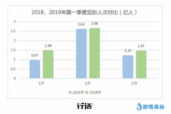 比票房缩水更为明显的是观影人次的下跌。2019年前三个月观影人次总计为4.77亿,较上年同期(5.61亿)减少了8400万,下降幅度达到15%。自2014年开始,观影人次逐年上升的趋势或将于今年首度逆转。