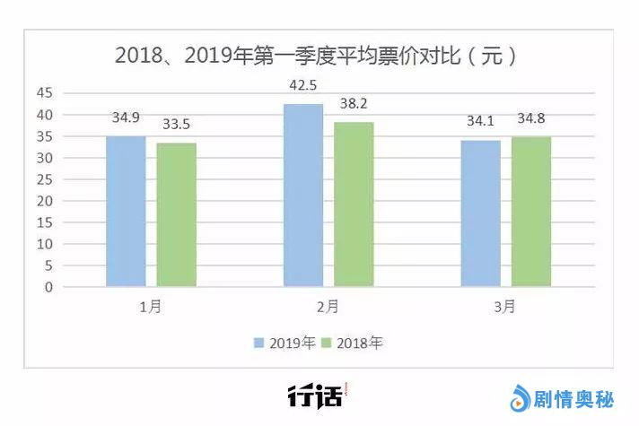 究其缘由,高票价仍是主因。今年第一季度平均票价为38.8元比去年同期高出2.7元,其中,春节档所在的2月涨幅最为明显,平均票价上涨了4.3元,涨幅达到11%。
