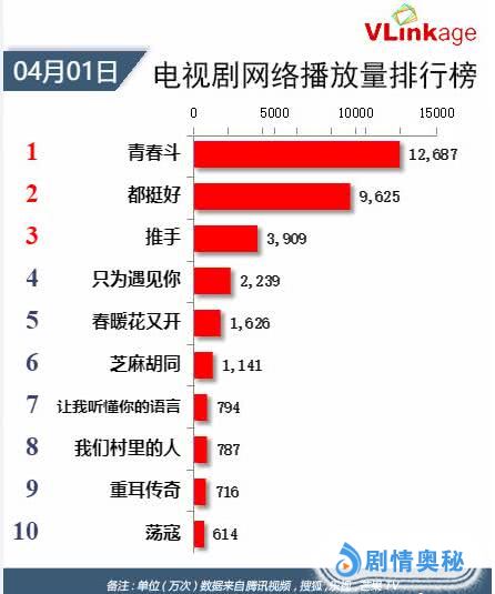 最新的电视剧网络播放量排行榜,收官的《都挺好》播放量下滑,而正热播的《青春斗》以日播放量1.2亿的数据排名第一,是第三名的三倍多,是第10名的20倍。