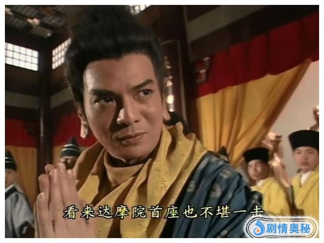 高雄出演的鸠摩智是电影版本的,他戴着一串大号的佛珠项链,表情严肃,透着冷冽之气,给人一种霸道强势的做派,作为一个武痴,有给人那种认死理的感觉。总之,缺少一点得道高僧的神韵。