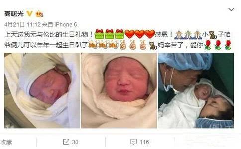 2016年4月21日,高曙光晒照宣布儿子出生。