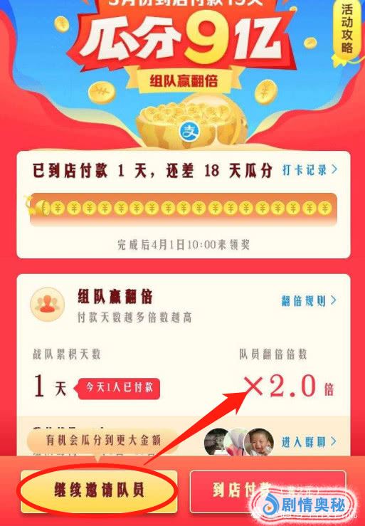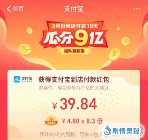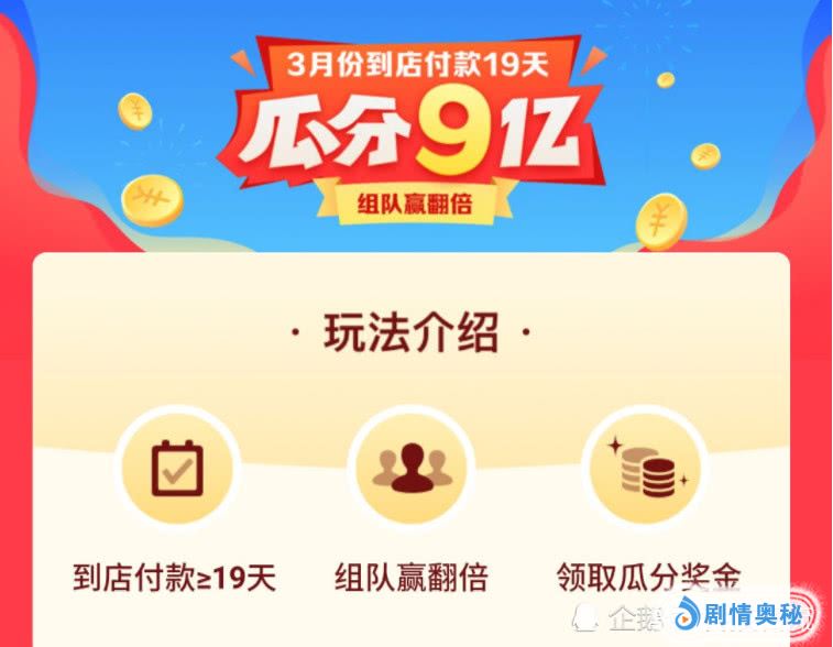 也就是,使用支付宝到实体店支付19天就即可有参与资格。并且不是要求连续19天,只要一个月有19天使用支付宝就可以获得参与资格。因此很多人都参与到这其中来了,毕竟9亿呢,都快接近中国人口了!