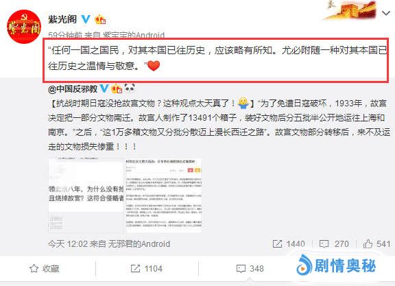 中国反邪教官博怒斥赵立新:抗战时期日寇没抢故宫文物?这种观点太天真了!故宫文物其中一部分转移后,来不及运走的文物损失惨重。赵立新,你一个瑞典国籍的人不要再说这种无耻的话。