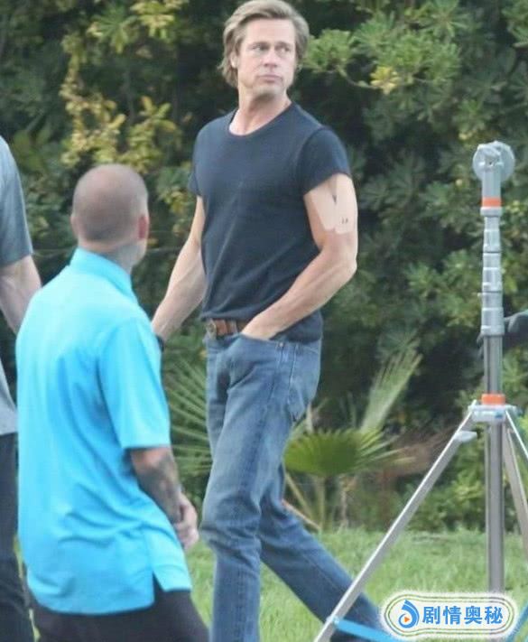 下图是55岁布拉德皮特的近照,正在《好莱坞前途》的片场。