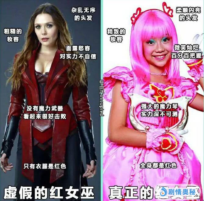 绯红女巫,首先要红,要鲜艳的红、特别的红,而后作为女巫,必须要有女巫的样子,使用能力的时候前摇是必不可少的,唤醒沉睡的魔法正是女巫的能力所在。漫威里这个,除了不够红之外,其仅凭情绪即可自由施法的设定根本不是女巫!缺少前摇仪式感,没有灵魂!