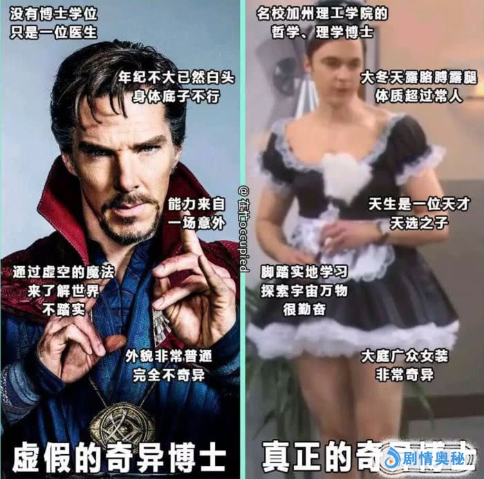 真正的奇异博士目光注视着宇宙,坚持科学道理绝不动摇,玄幻魔法什么的根本不可能让他有所动摇。而漫威中的假博士,仅仅因为双手没法挥刀转而就信了玄学,整日想着灵魂出窍,怎负博士之名(不过这里需要纠正一下,原著奇异博士实际上是哥伦比亚大学医学博士)?