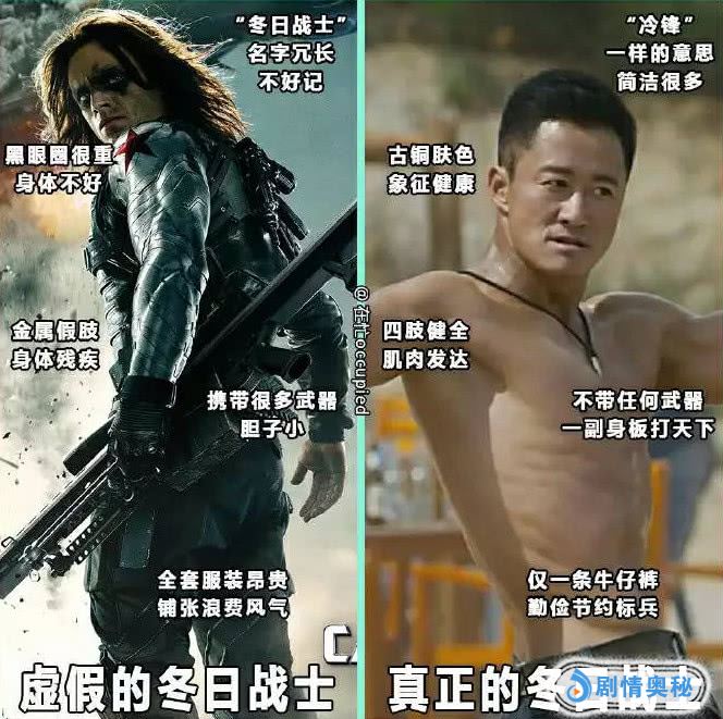 真正的冬日战士不惧严寒,有着铁打的身躯、冷酷的面容,真正意义上的像冬天一样。而漫威里的这个,穿着花里胡哨的战衣,戴着花里胡哨的面具,实际上褪下面具之后是一副软萌模样,似乎谁都可以推倒,这样在敌人面前毫无气场。