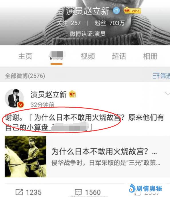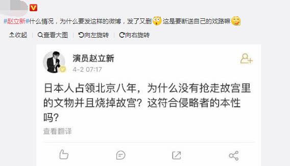 4月2号,演员赵立新在社交平台发布了不当言论,他说日本人当年为啥没抢走故宫的文物和烧掉故宫,竟然说这不符合侵略者本性。此言一出,赵立新立刻成为网友讨伐的对象,直言这种人不配做演员,毫无底线。