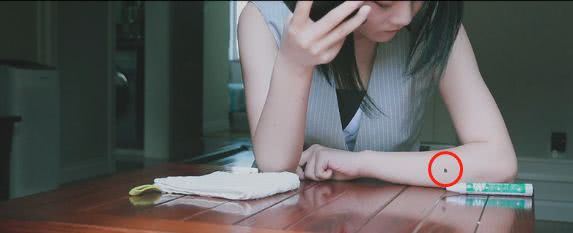 因为天气太热,朋友脱掉外套,露出了十分凑巧的手臂。