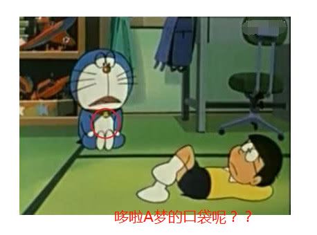 这一幕的穿帮镜头,就特别可怕,哆啦a梦最特殊的地方就是,他身上有一个万能的口袋,能变出任何你想要的东西,但是这一集,出现了这样一幕,哆啦a梦的神奇口袋竟然消失了,是不是被自己的大腿遮住了呢呢!失去神奇口袋的他会怎么样呢?