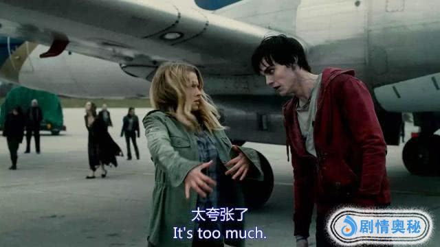 丧尸作为主角,很少见,还是个内心很有幽默感的丧尸,他在看见女主角的一瞬间就有恋爱的感觉,作为丧尸,吃掉了对方男朋友的脑子,拥有了女主角男朋友的记忆,这就更加深了他的感情,他带走了朱莉,带回了自己住处——一架飞机里。