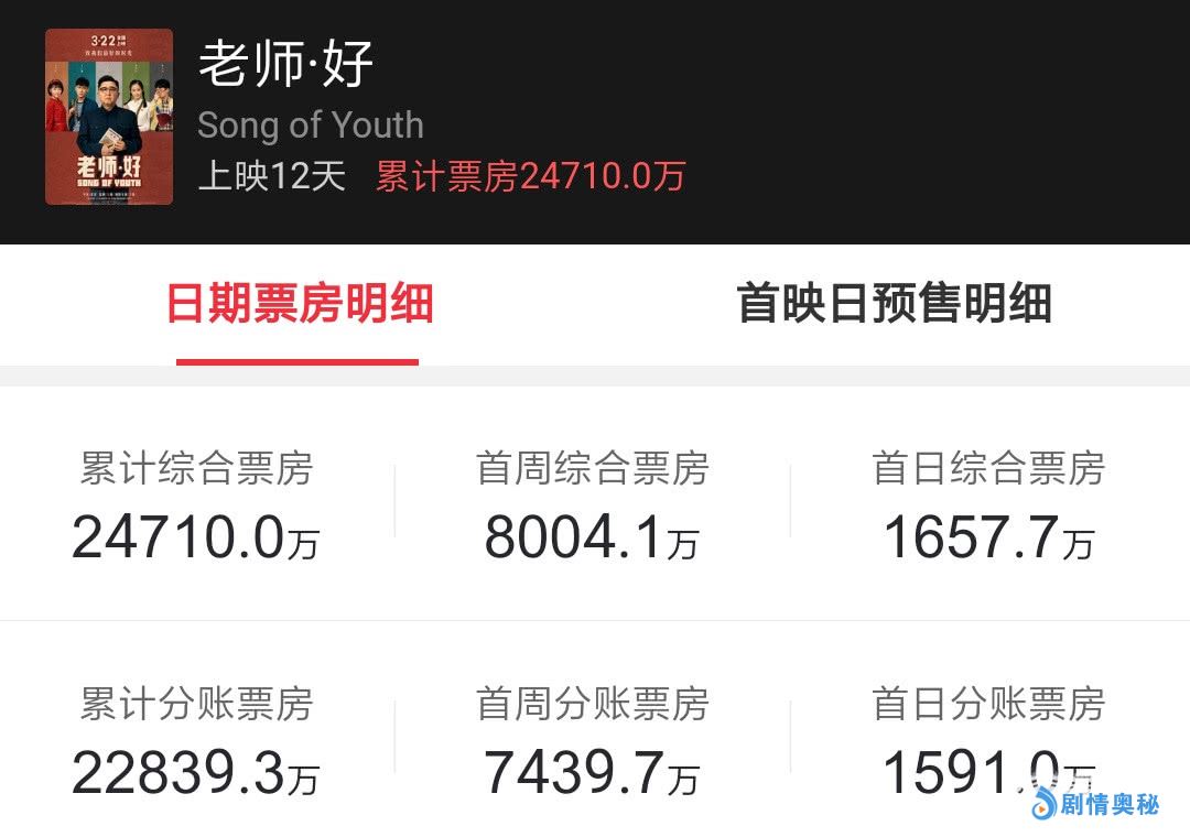 截止4月3日,《老师·好》已经上映12天,累计票房高达2.4亿,远超票房预期,于谦首次担任男主角便旗开得胜,不仅撑起了演技也撑起了票房,堪称他影坛最轰动一次!