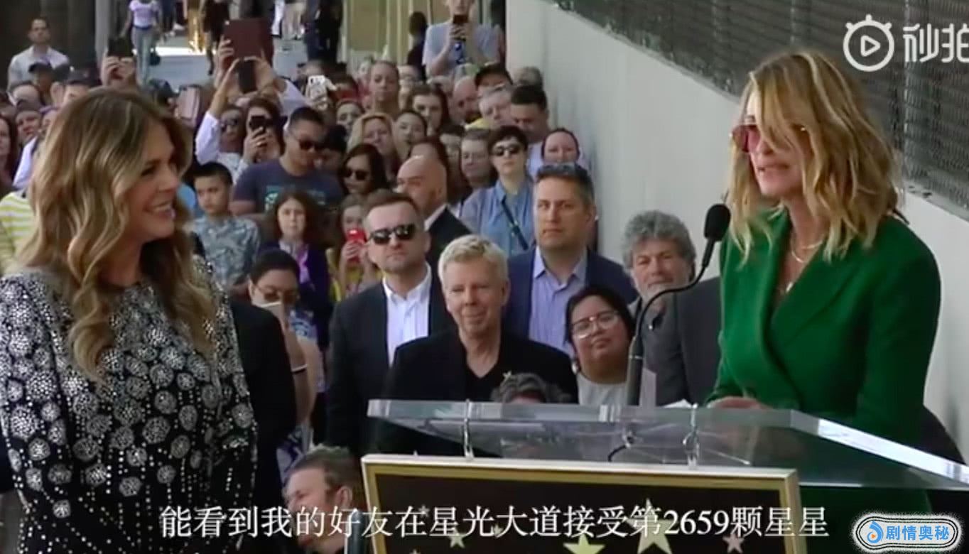 丽塔·威尔逊的好友,奥斯卡影后朱莉亚·罗伯茨也到场为好友助阵,两人同样是通过合作电影结下友谊,朱莉亚在发言中自豪地表示为好友留名而自豪,而她目前还没有在星光大道摘取属于自己的星星。