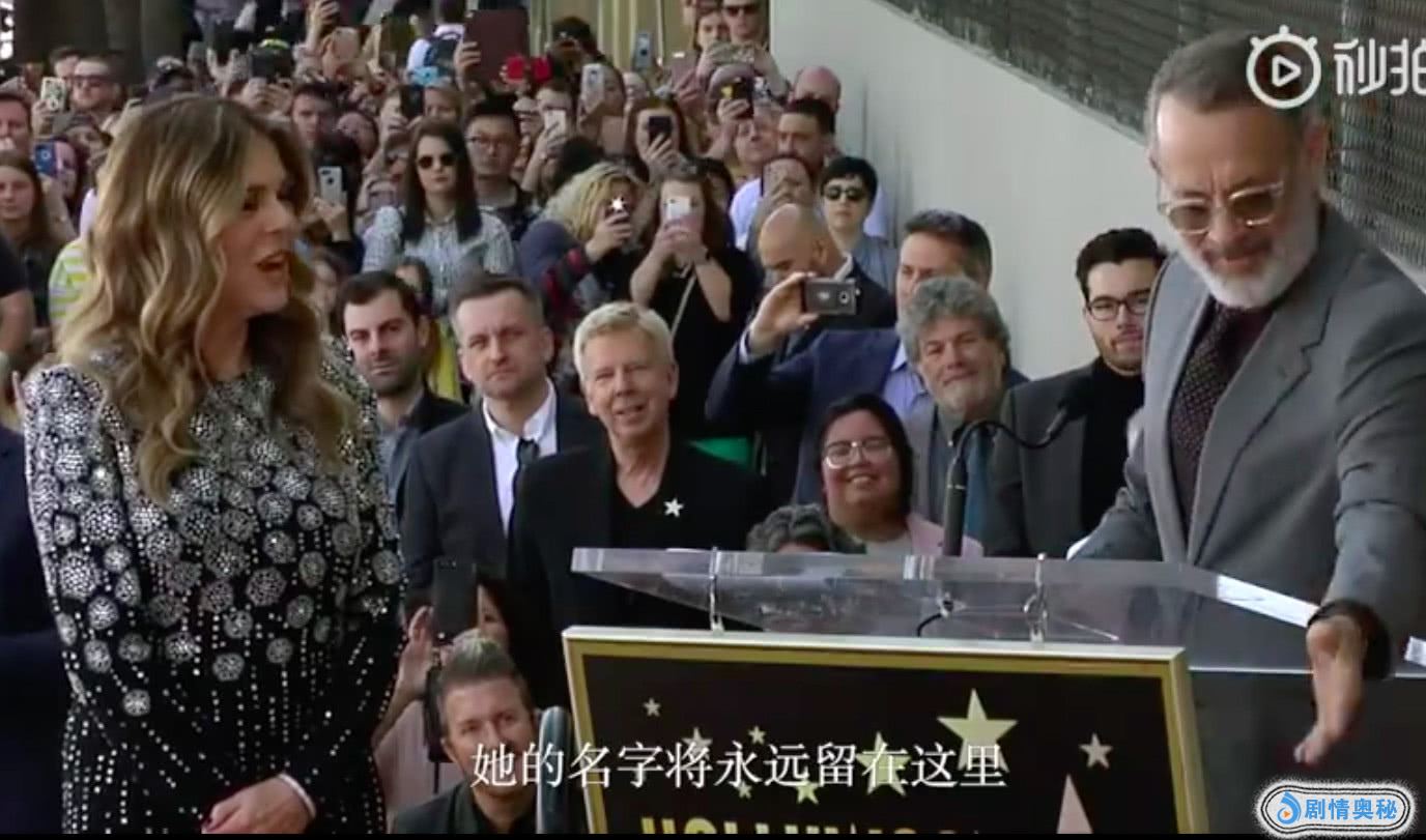 他的丈夫也到场为妻子祝贺,并恭喜她的名字可以永远留在这里。二人在1985年拍摄《志愿者》时相爱并结婚,如今携手度过三十余年的婚姻历程,且双双在星光大道上留名,也算是好莱坞影星里事业、家庭方面的模范夫妻了。