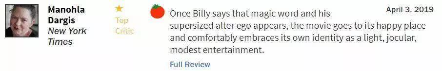 而当被要求用一句话评价《雷霆沙赞!》的时候,他的回答是: