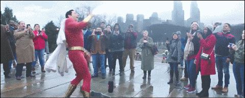 继承了巫师沙赞的力量之后,只要高呼一声「Shazam!」,比利就会被闪电击中,变身成一位超级英雄。