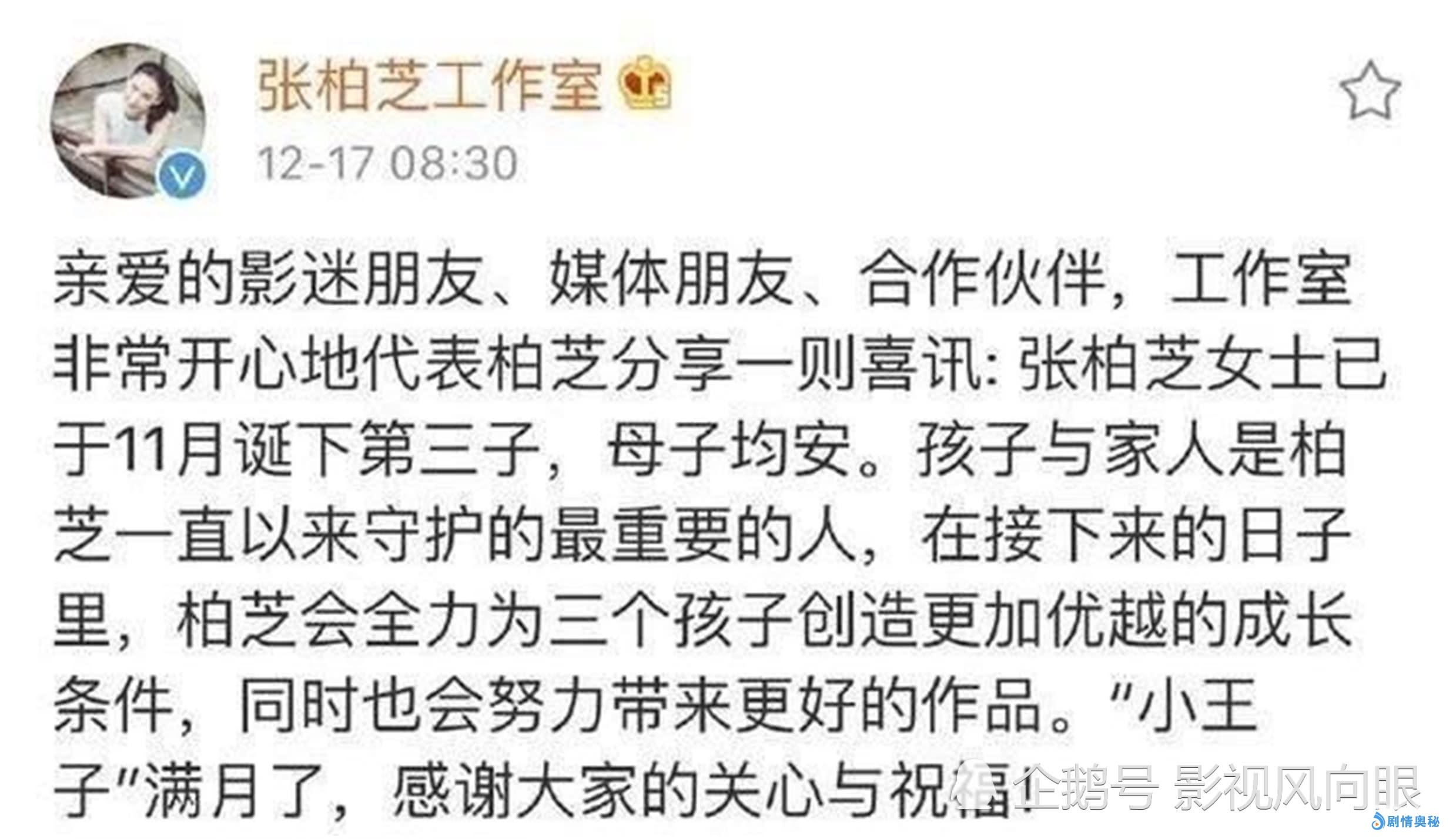 还有一件事情同样值得大家关注,那就是张柏芝三胎父亲的身份。从孩子出生到现在,已经过去了将近5个月时间了,孩子生父的身份至今还是个谜,同样很多网友也是猜测了许多个对象,但是这些都被张柏芝工作室一一辟谣了。