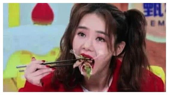 戚薇不愧有“戚哥”之称,这为了不蹭掉口红把嘴张这么大也太拼了吧。不愧为观众心目中名副其实的女汉子定位,为了吃,再拼也无所顾忌。