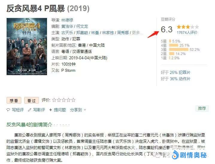 其中,在上映的众多港片中,就属反贪系列最为火爆,两年一部的高产量依旧获得不少观众青睐,甚至在《反贪风暴3》上映不到半年之际,第四部又再次定档了4月4日,一定程度上获得观众期待,但同时观众也对影片质量产生了质疑。果不其然,在影片上映后,虽然票房上持续渐长,甚至一度力压《雷霆沙赞!》,但是口碑上却出现了两极化,猫眼和豆瓣分别给出了9.2和6.3的差异评价,甚至还有网友吐槽到:一部圈钱之作。