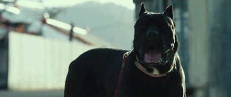 狗很凶,一言不合就对着男人汪汪汪的叫起来。男人不甘示弱,不追大妈了,用丧尸独有的语言和狗杠了起来。