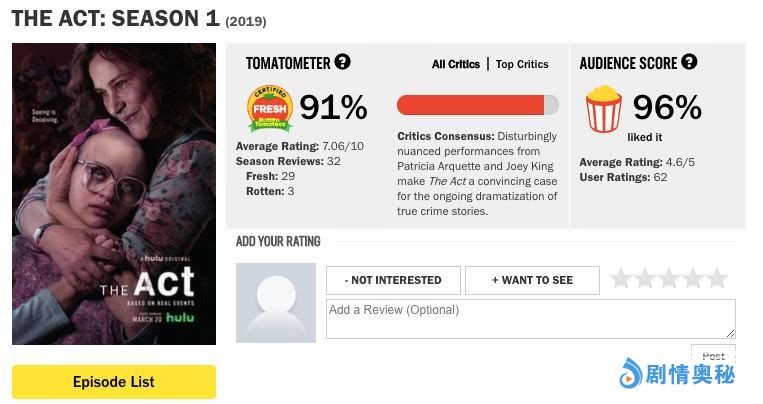 截至目前,该剧在烂番茄上好评率高达91%,MTC打出73的均分,IMDB上也有8.5的评分。