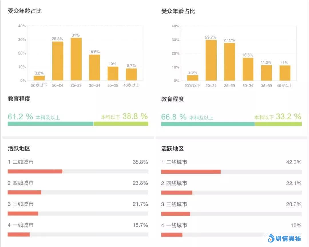 对比用户画像就能发现,观看《反贪风暴4》的25-34岁之间的观众比例高于《雷霆沙赞!》,三四线城市的观众占比也超过后者。
