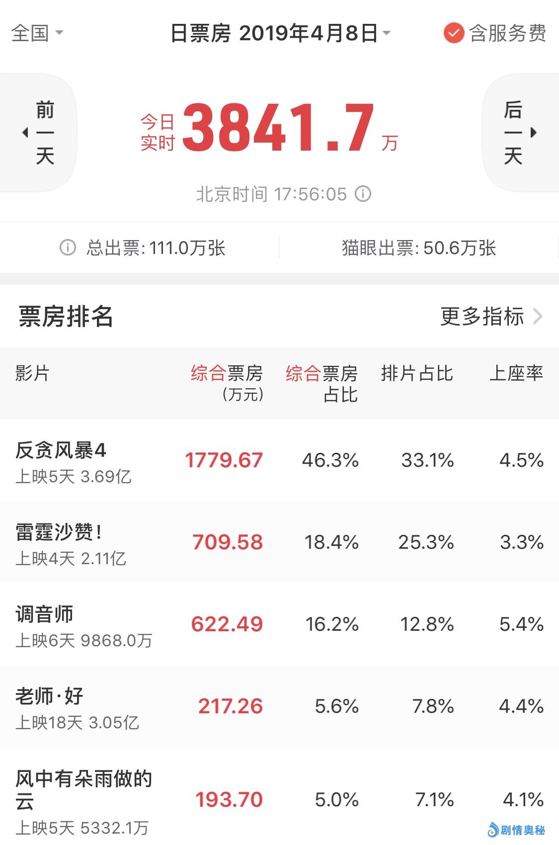 从票房成绩来看,一部国产电影出乎意料的霸占着单日票房冠军,这部电影就是《反贪风暴4》,该片上映5天拿下3.6亿的总票房成绩,遥遥领先于其他同期上映的影片,在映的5天时间内均拿下单日票房冠军,连好莱坞大片都没有放在眼里。