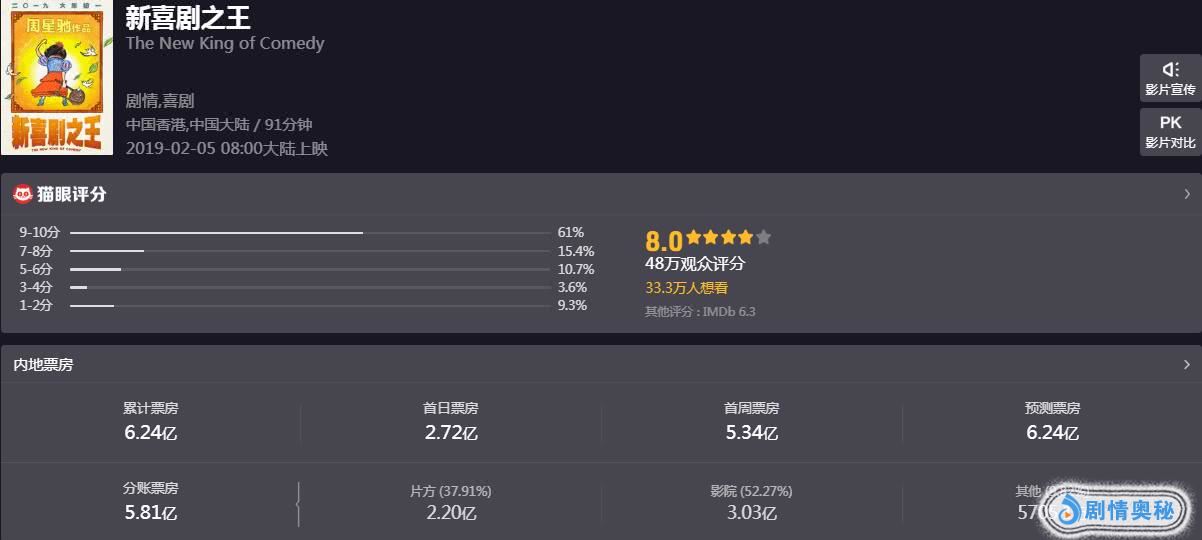 《新喜剧之王》是周星驰和王宝强首次合作,这样梦幻般组合票房应该破纪录才对,有谁想到票房竟然垫底惨败了。当然有人会说该片成本仅5000万元,票房收了6.24亿利润回报率很高了,但小编想说如果用6亿票房来衡量星爷和王宝强那他们也太掉价了吧?所以说这部新片票房惨败观点也是成立的,现今的王宝强已经掉出第一梯队了,沈腾,吴京,徐峥在他之上了。
