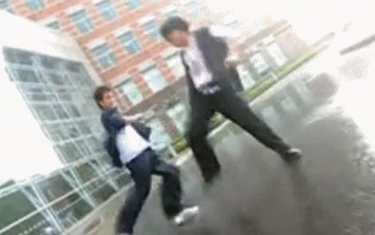 你们脑海中应该想到的就是一个女人在雨中看着两个怪异的男人,嘴里大声叫着“住手!你们不要再打啦!”的画面吧。