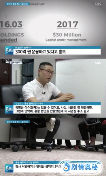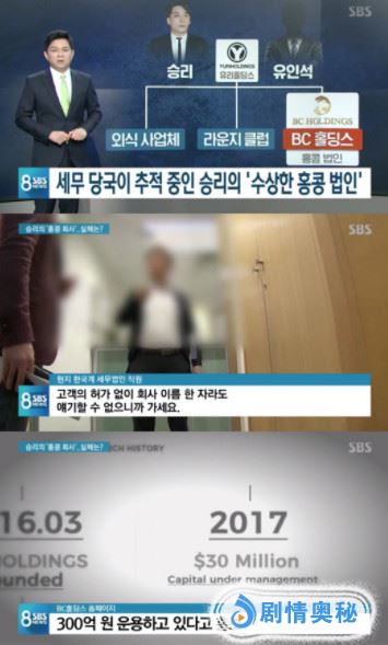 在本月7日播出的SBS《8 NEWS》中,胜利和Yuri Holdings前代表刘仁锡、韩国国内某咨询企业代表柳某代表各以1万5000韩元、共约4万韩元的资本金,在香港设立了BC Holdings。
