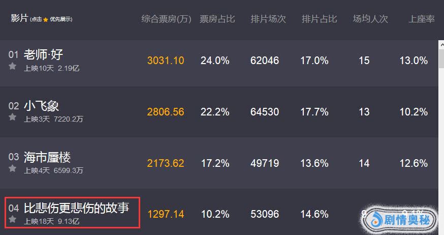 比如说,同期公映口碑不俗的《过春天》在《悲伤》面前被强势碾压。