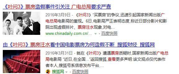 有意思的是,《叶问3》还被爆料票房造假,早成为业内丑闻。