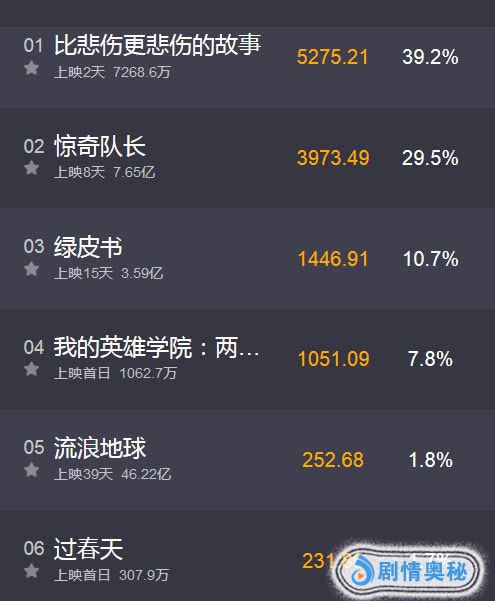 冠军是好莱坞大片《惊奇队长》,揽下10.2亿。
