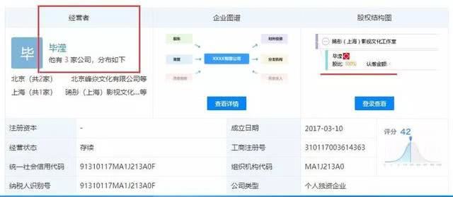 虽然当时有传洪欣“开除”了毕滢,但是据资料显示,张丹峰所在的“晞彤影视文化工作室”,毕滢控股100%,也就是说她才是老板,张丹峰是“员工”。