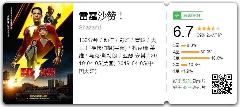 《雷霆沙赞!》豆瓣评分
