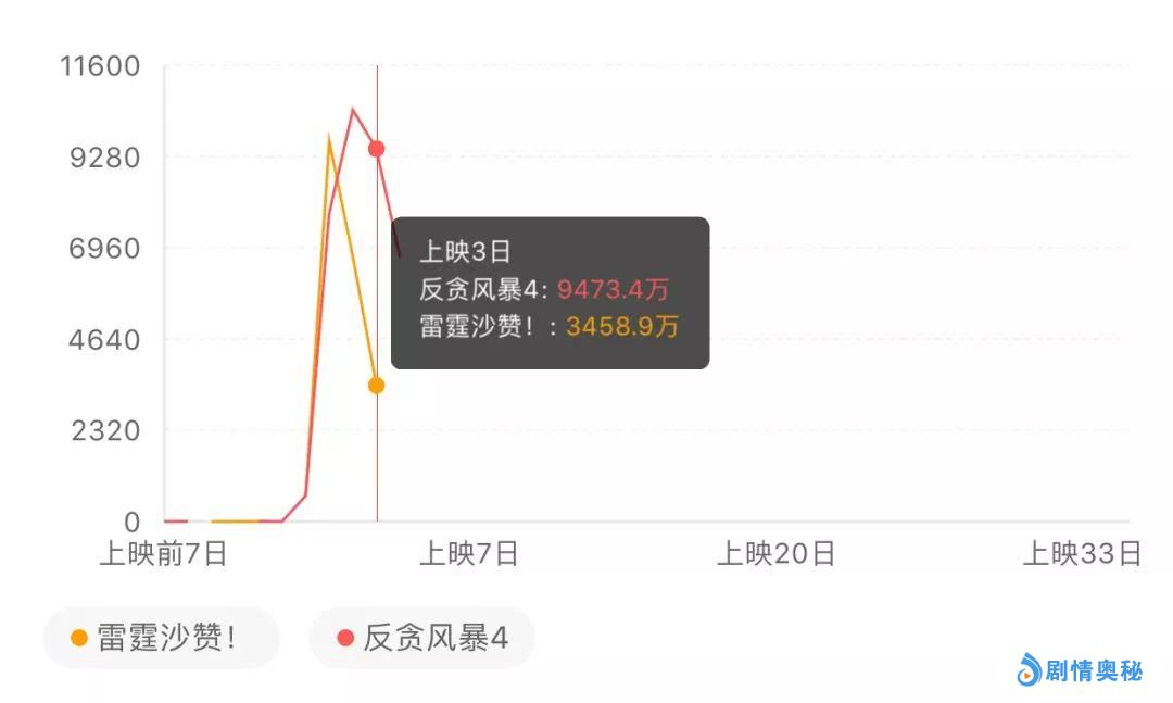 《反贪风暴4》与《雷霆沙赞!》票房走势