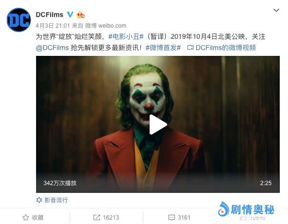 即便是与自己的“同事”相比,《沙赞》的流量也只可用一个“惨”字形容——不久前,DC电影发布了《小丑》的首款中字预告,短短2天在同一平台的转发和视频播放量,均有沙赞的几十倍还要多。