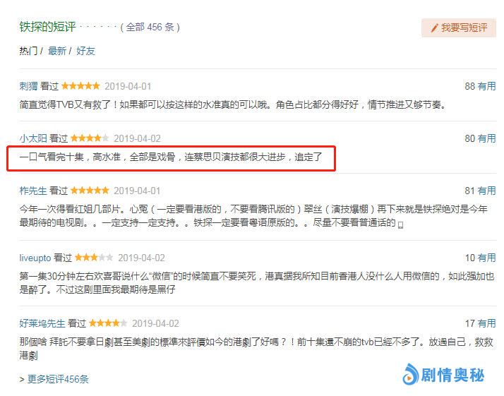 总之,从目前更新的15集来看,《铁探》凭借着众多演员的实力演绎,以及节奏紧凑的剧情发展俘获了无数观众,同时也使得众多观众与小编同样有一追到底的念头。而你对于该剧又有何看法呢?码字不易,欢迎关注点赞,留言讨论。ps:附带三张豆瓣网评