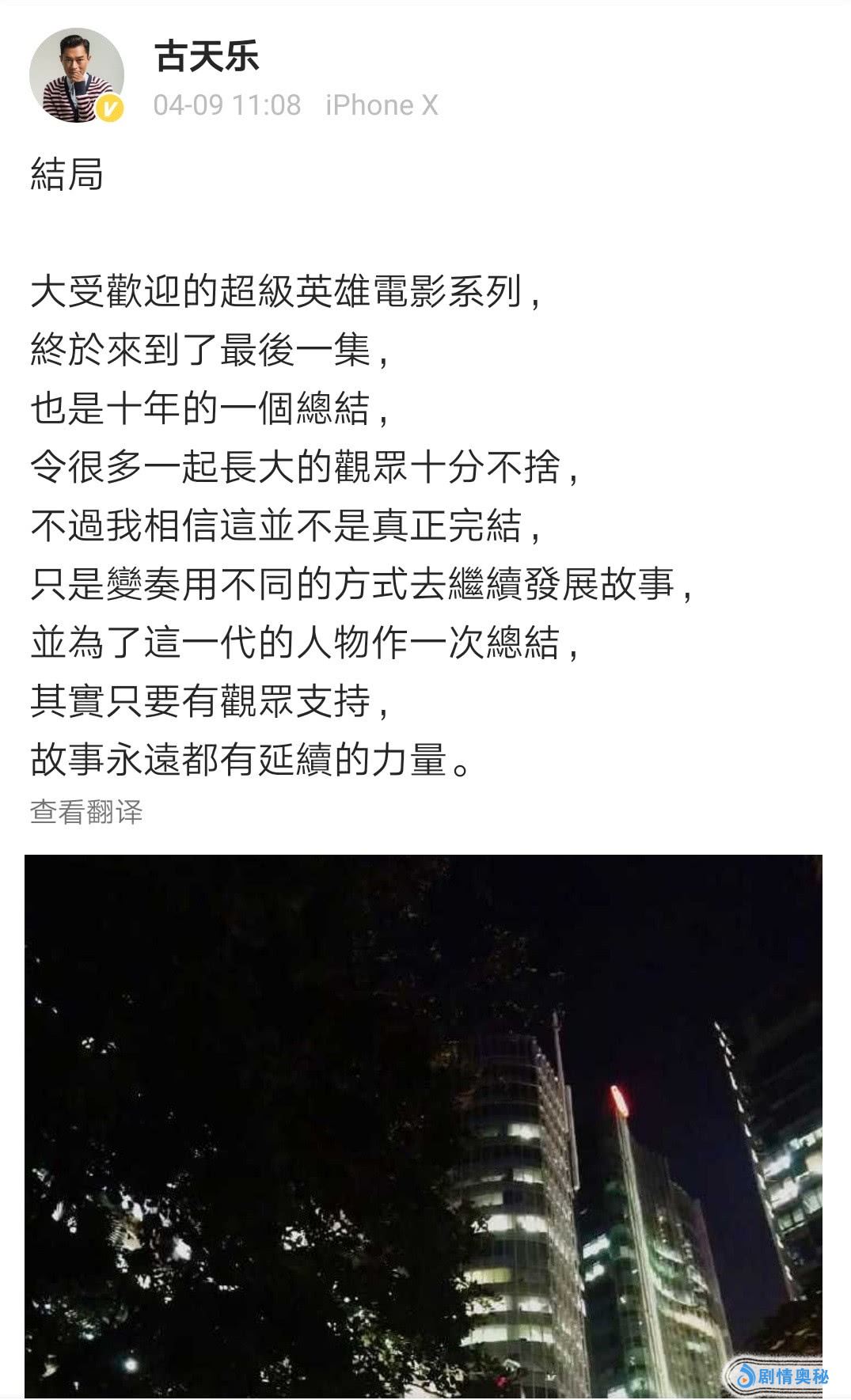 这样来看,《复仇者联盟4》上映,古天乐应该不会错过了。
