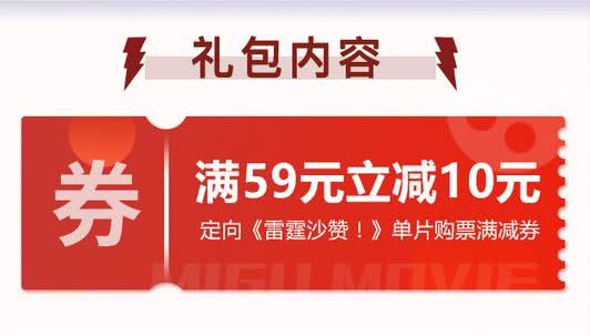 即日起至4月12日,用户可通过咪咕影院提供的H5页面领取万达影城、横店影城购买《雷霆沙赞!》电影票满59元立减10元优惠券。